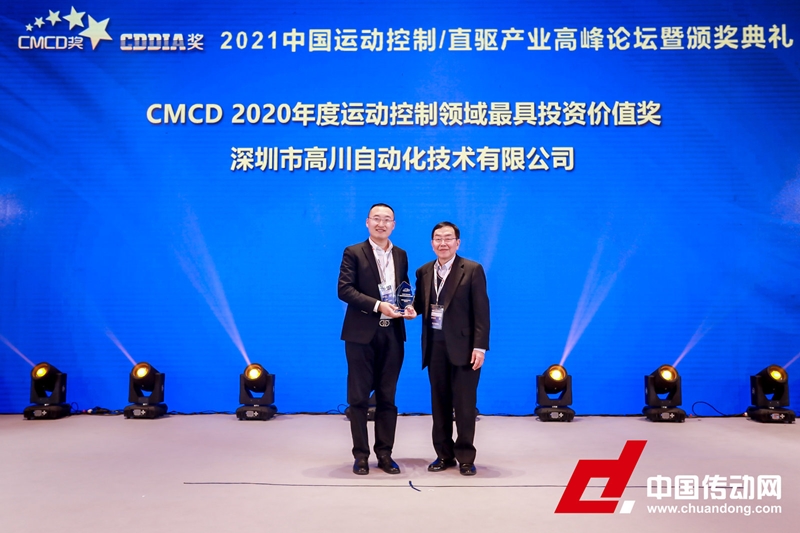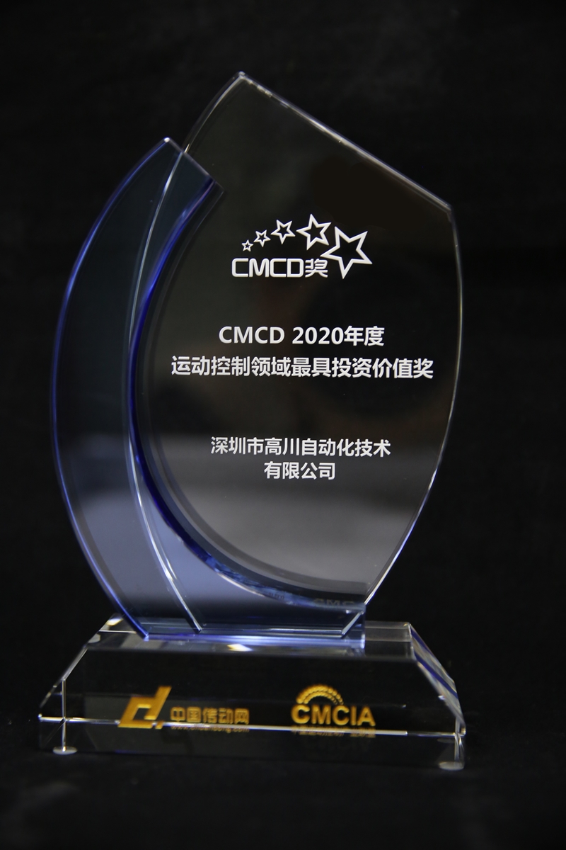 此次頒獎活動的各項數據歷經2個月行業、設備終端的采集調研及企業回訪交流收集,再經中國運動控制產業聯盟專家、行業機構和專業媒體的綜合評選,高川自動化榮獲:CMCD 2020年度運動控制領域最具投資價值獎!